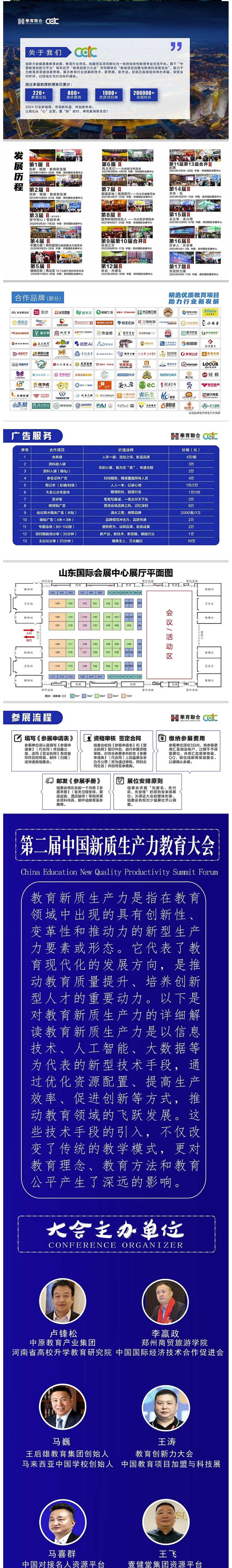 第二届中国教育新质生产力大会暨中国教育项目加盟与教育科技展览会由创新力会展倾心打造“精选优质项自助力机构087,构建教育项目(科技产品)合作、投资创业、教育综合体招商运营等完整的“教育 科技 双创”产业链。展会本着“好中选优,优中选精”的原则,汇聚行业200 优质教育项目及教育科技产品涵盖素质教育、教育科技、幼儿教育、职业教育和教育服务等满足教育机构办学所需的品牌与课程、硬件到软件及相关配套与服务等,是当下机构转型素质赛道,甄选优质项目、科技产品的“一站式”采购平台。