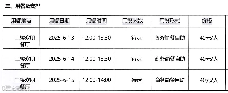 门票已包含三日午餐,酒店提供自助简餐,餐标人均40元。