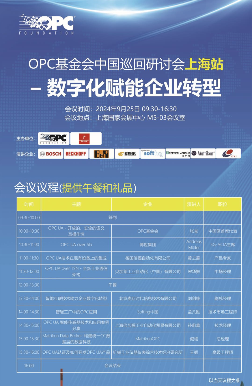 OPC基金会中国巡回研讨会上海站——数字化赋能企业转型