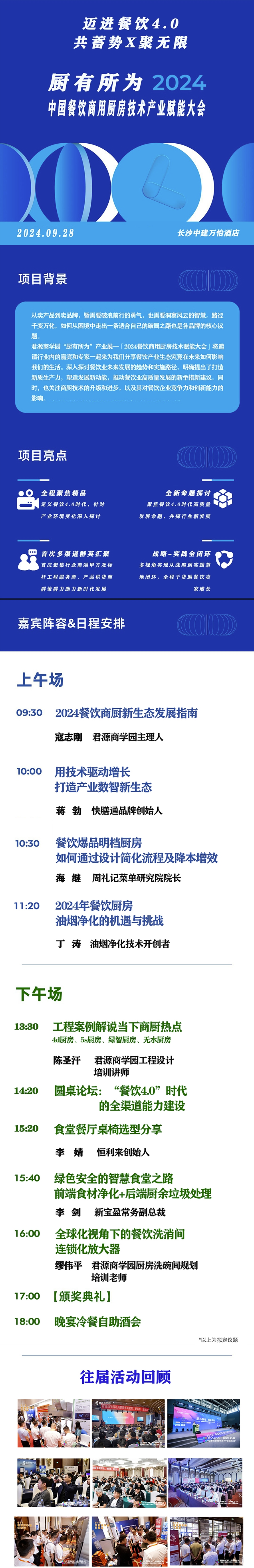 君源商学园“厨有所为”产业展—「2024餐饮商用厨房技术赋能大会」将邀请行业内的嘉宾和专家一起来为我们分享餐饮产业生态究竟在未来如何影响我们的生活。