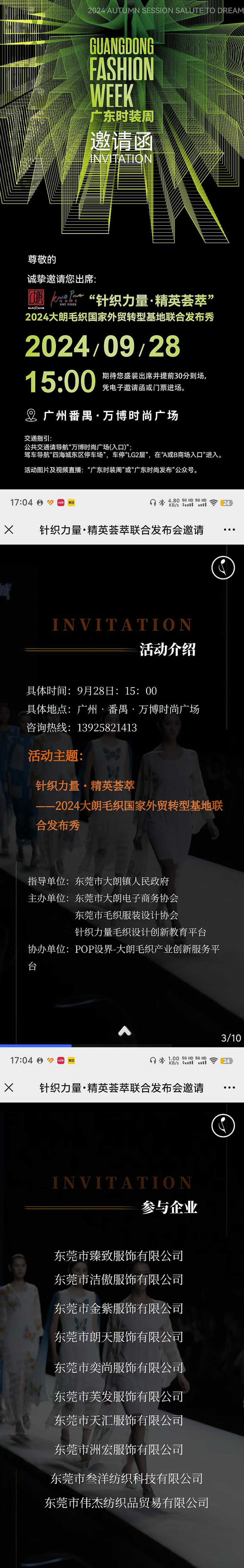大巴接送邀请:针织力量・精英荟萃2024大朗毛织国家外贸转型基地联合发布秀