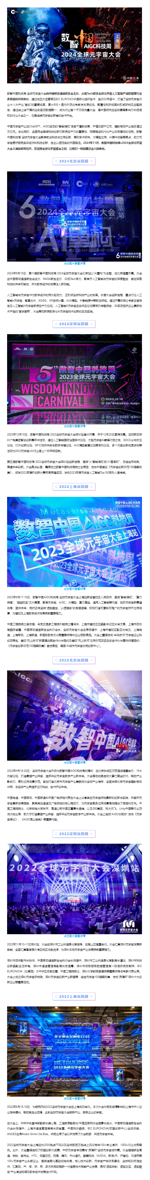 数智中国科技周·全球元宇宙大会由中国移动通信联合会主办,众视Tech联合全球元宇宙人工智能产城联盟等行业多家组织共同承办,通过与四大运营商及BIC EURONOVA国际化组织合作,自2022年至今,打造了全球元宇宙行业十八大产业“首创”的重要成果,累计500+国内外顶尖专家发布原创性、颠覆性科研成果和权威研究及主题报告,通过线上线下模式达到各项数据第一,成为行业首个千万级流量大会,是中国领先在全球最具影响力和话语权的行业大会之一,也是连接元宇宙创新者的合作平台。