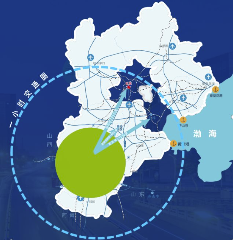 石家庄都市圈已列入《国家新型城镇化规划》,重点建设任务覆盖衡水市、邢台市、邯郸市全域,保定市、沧州市部分县区,以及山西省阳泉市和晋中市昔阳县。石家庄是陆港型、生产服务型、商贸服务型国家物流枢纽承载城市,拥有城际铁路、高速公路和航空等现代化综合交通网络,高效通达广阔市场。与京、津、晋、鲁、豫等省市形成的“一小时交通圈”,覆盖超过中国人口总数的1/5,辖区内所有县、市、区可半小时到达高速公路,1小时到达主城区,构建了更加紧密的经济圈、交通圈、生活圆组成的现代化国际化都市圈。随着石家庄都市圈的规划建设,石家庄必将迎来前所未有的发展机遇。