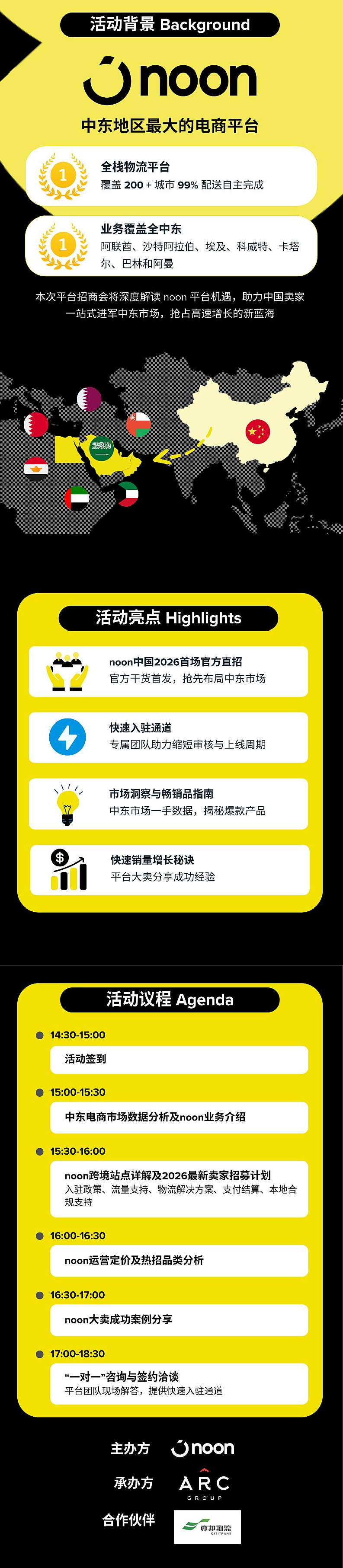 中东**电商平台noon:2026中国首场招商大会(1月30日杭州场)