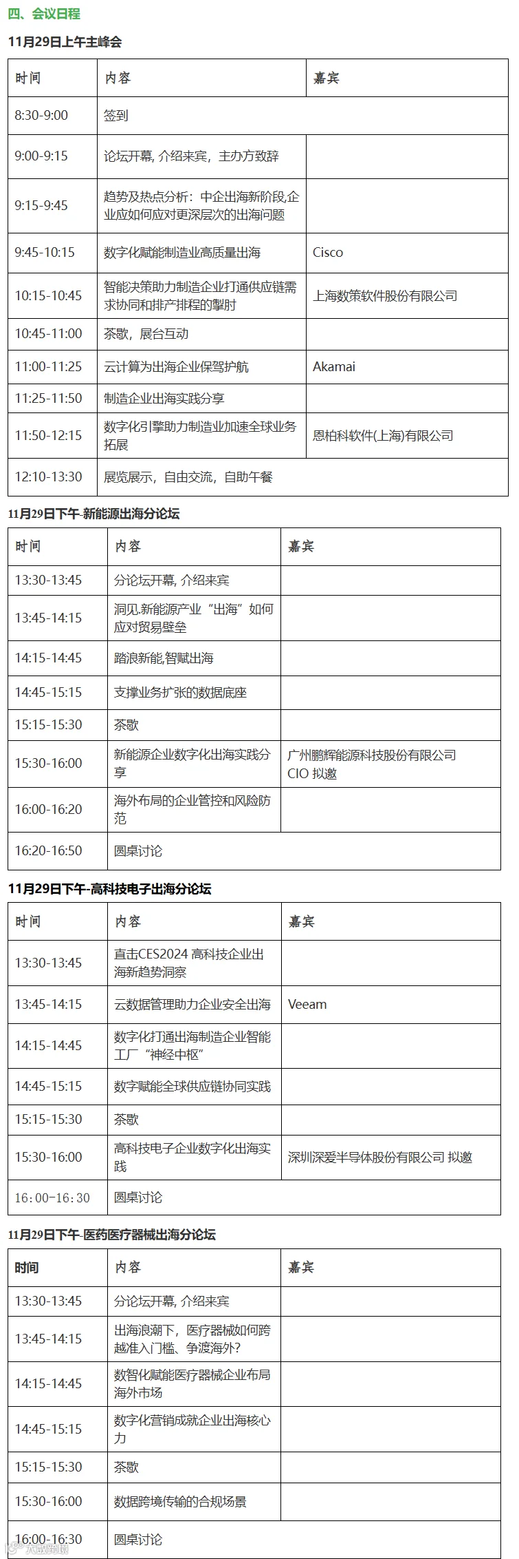 由中国智能制造百人会,中国智能制造产业网主办的“2024数字出海.数智化赋能新型制造业高质量出海大会”将于11月29 日在深圳举办,本次会议将解析中国制造业出海面临的环境(政策,法规,文化),市场,业务,管理挑战,研讨数智化如何帮助出海制造企业'内外'兼修,增强核心竞争力,走向创新,合规的国际化企业。