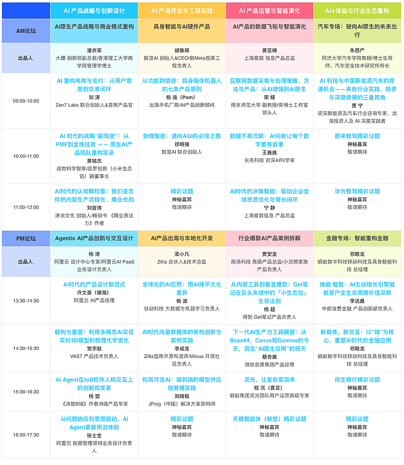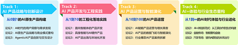 议题垂直,深度聚焦:四大Track 12个垂直分论坛,直击AI产品核心挑战与机遇;
