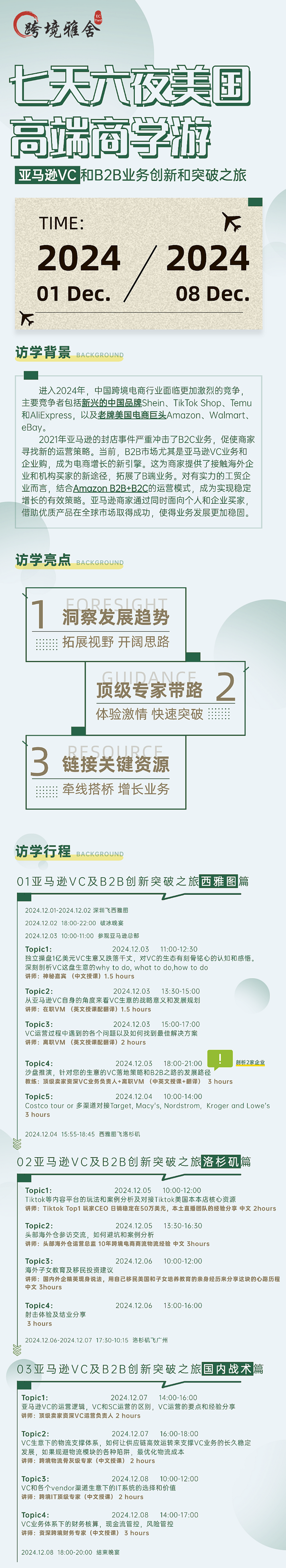 【雅舍七天六夜美国高端商学游】亚马逊VC和B2B业务创新和突破之旅