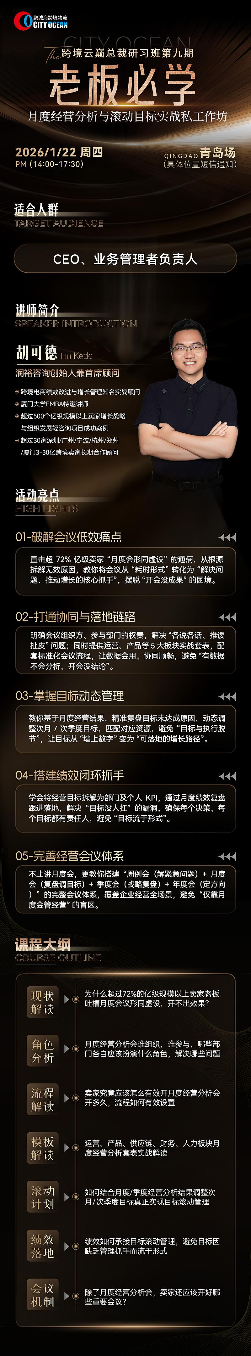 鹏城海跨境物流·【跨境云巅总裁研习班】第九期月度经营分析与滚动目标实战私工作坊胡可德专场-青岛站