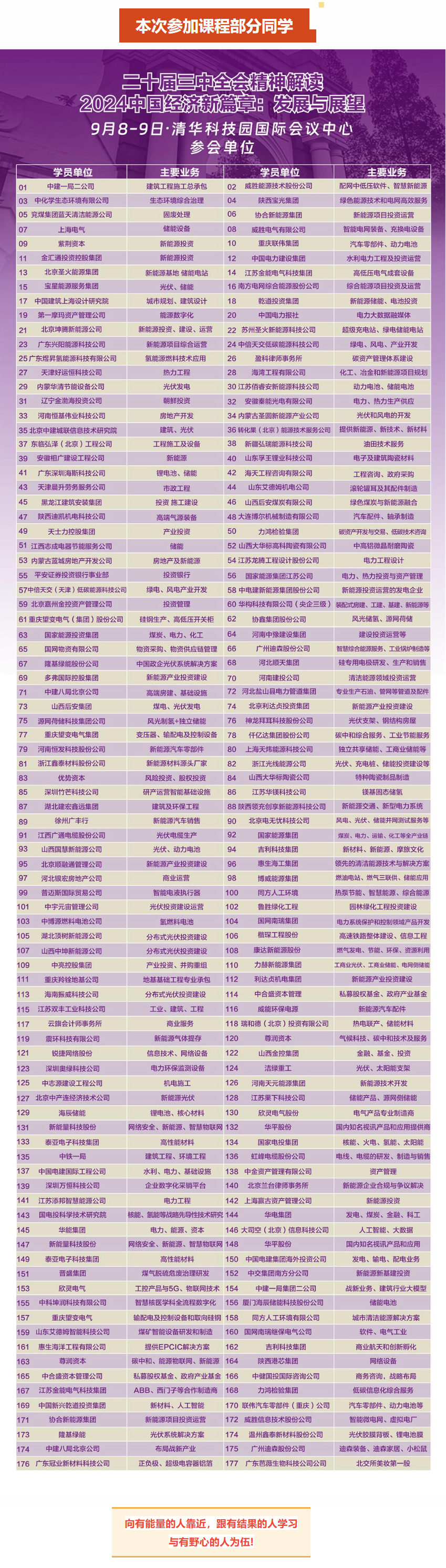✅ 报名对象:每期限额择优录取30位新能源产业链上下游、双碳领域规模以上企业负责人及机构投资人;