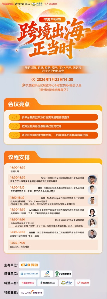 跨境电商出海 宁波产业带阿里巴巴速卖通、TikTok、美客多、Voghion官方私享会