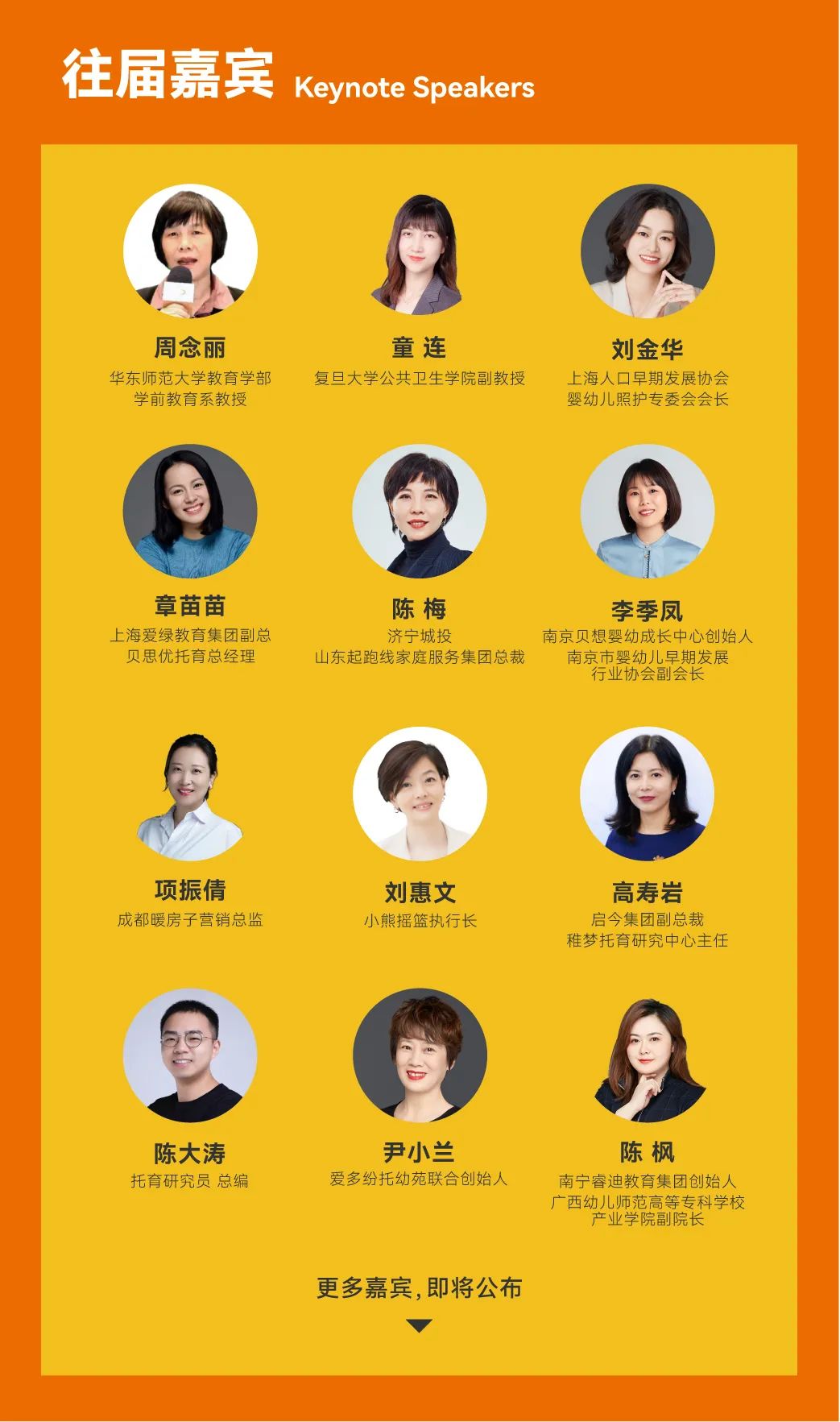 在过往会议中,众多学前及托育教育行业专家讲座/分享,为各位参会嘉宾分享他们的真知灼见,今年的嘉宾名单后续出炉,敬请期待。
