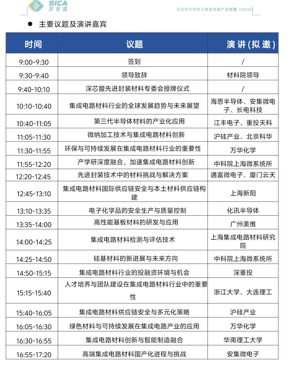 联合主办单位:深芯盟、深圳先进电子材料国际创新研究院