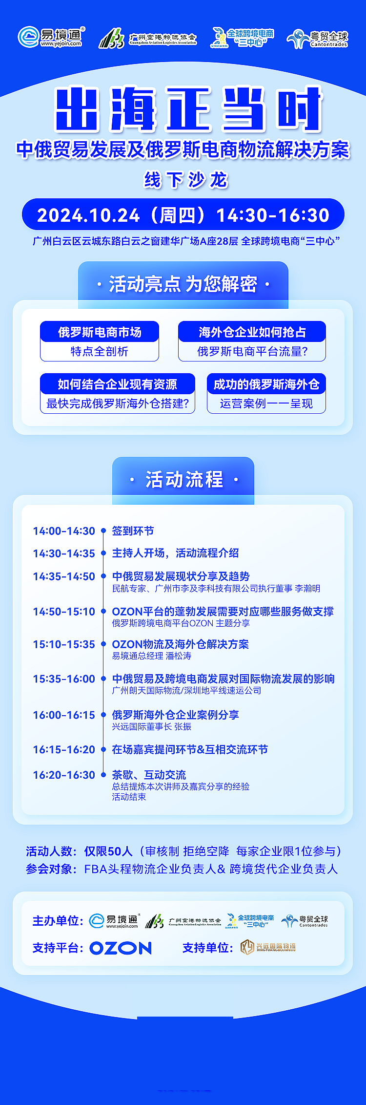 10.24广州《出海正当时——中俄贸易发展及俄罗斯电商物流解决方案》线下沙龙