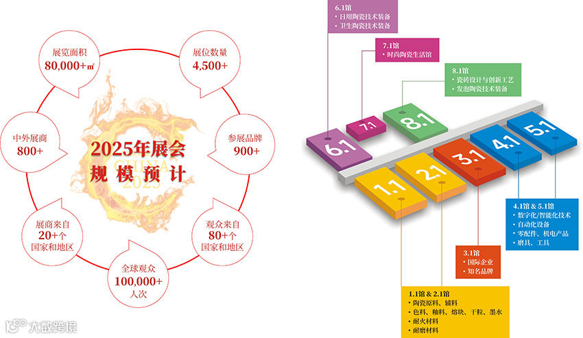2025年6月18-21日,第39届中国国际陶瓷工业展览会(简称:广州陶瓷工业展)将继续在广州·广交会展馆A区举办。预计展览规模将超过80,000平方米,中外展商800多家,参展品牌900多个,将吸引80多个国家和地区的业内观众和专业买家约10万人次到场参观采购。