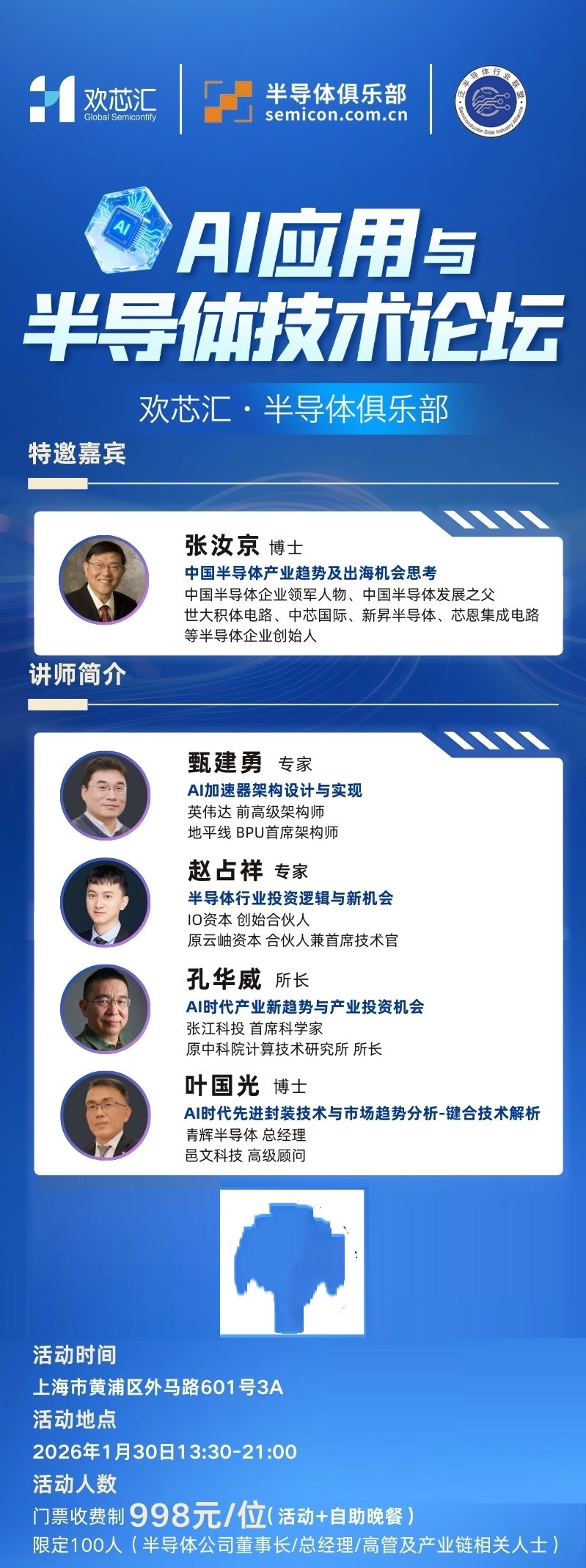 2026年1月30日,欢芯汇·半导体俱乐部-AI应用与半导体技术论坛(张汝京博士亲临现场)