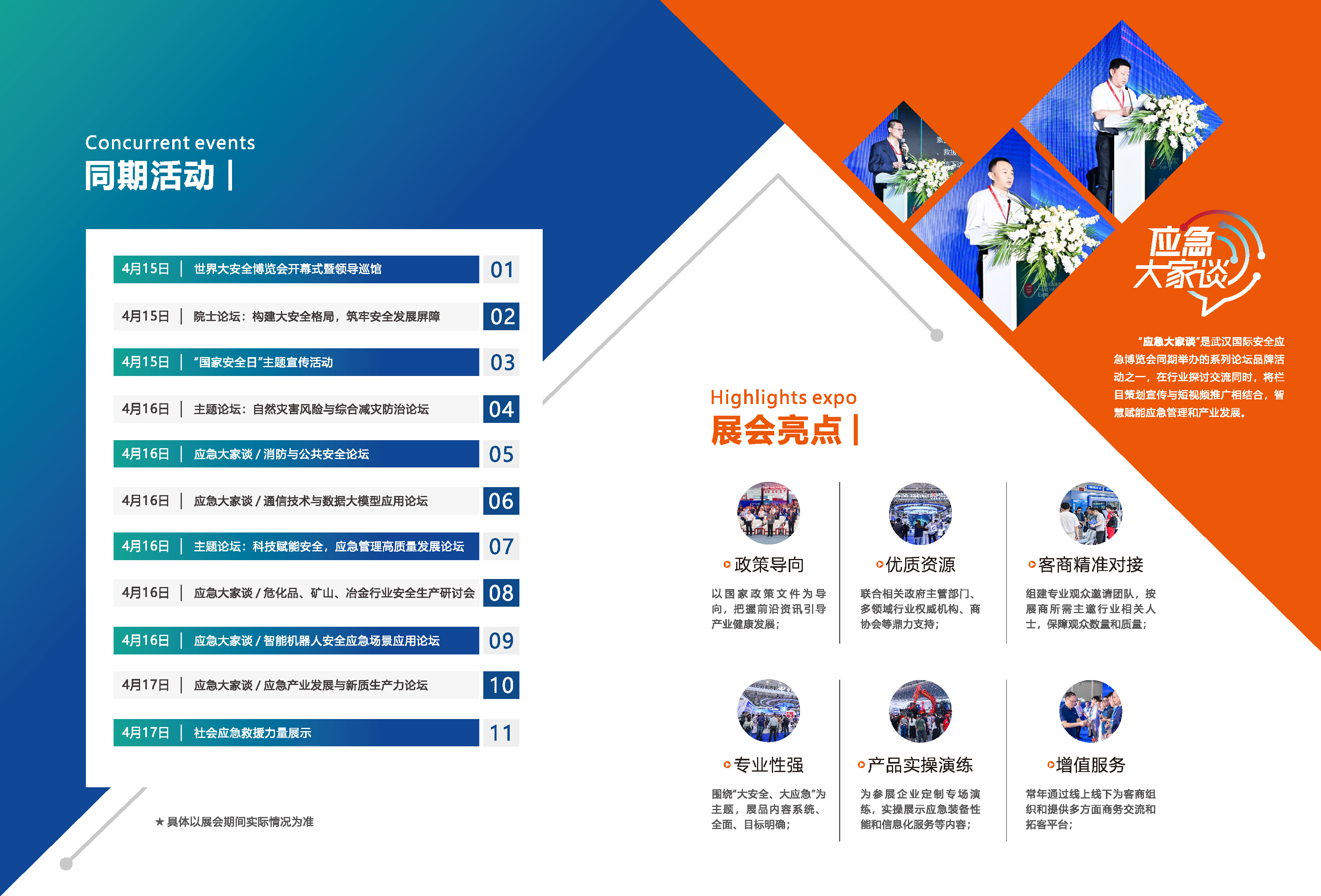 为全面贯彻落实总体国家安全观,统筹发展与安全,以新安全格局保障新发展格局,加快推进应急管理体系和能力现代化建设。进一步强化应急管理科技装备的供需信息对接机制,促进国际国内合作交流,培育壮大安全应急产业集群。结合武汉国家中心城市的战略定位和区位及产业优势,在“大安全、大应急“框架下,定于4月15-17日在武汉国际博览中心举办第六届世界大安全博览会(World Security EXPO),并同期举办“国家安全日“系列活动和“应急大家谈“系列论坛。