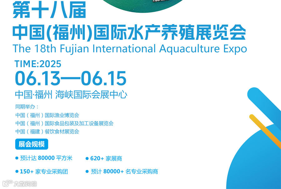 2025中国(福州)国际水产养殖展览会(简称:2025福州水产养殖展),将于2025年6月13-15日在福州海峡国际会展中心盛大开幕,同期举办:中国(福州)国际渔业博览会、中国(福州)国际食品包装及加工设备展览会和中国(福建)餐饮食材展览会。