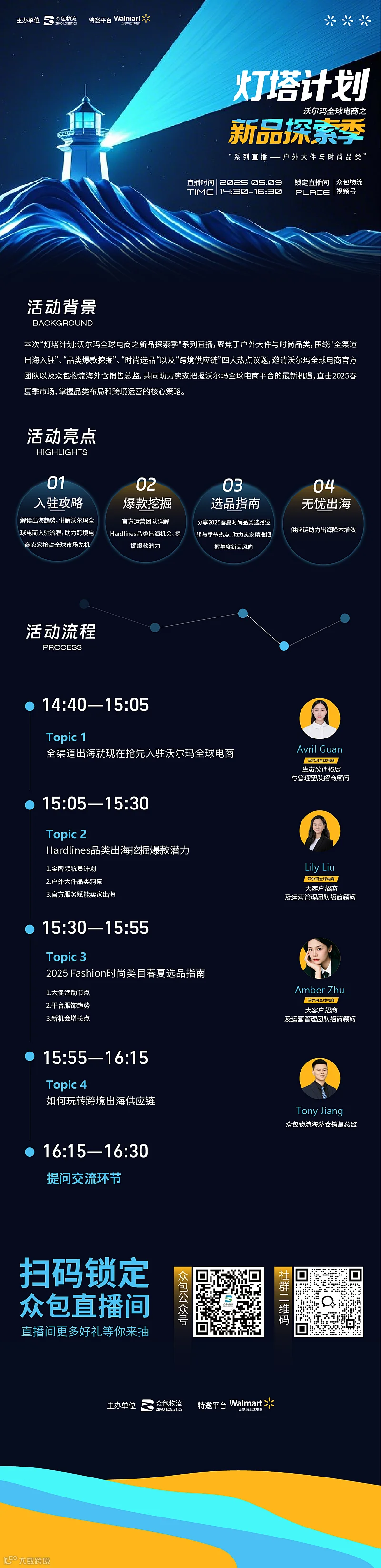 灯塔计划:沃尔玛全球电商之新品探索季系列直播——户外大件与时尚品类