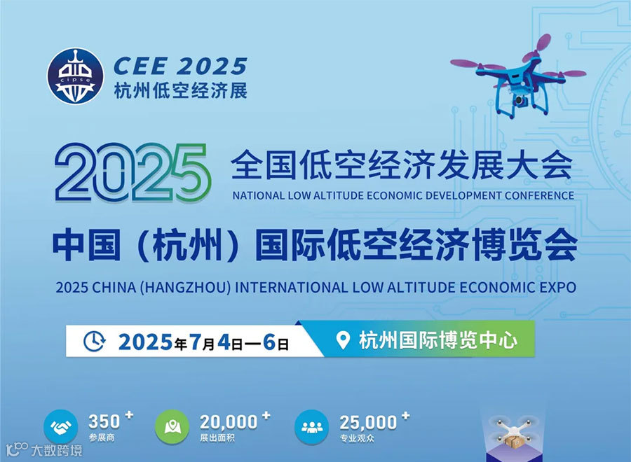 共襄盛举——全国低空经济发展大会暨CEE2025中国(杭州)低空经济博览会”(简称:CEE 2025杭州低空经济展)将于2025年7月4-6日在杭州国际博览中心隆重举办,预计展出面积将达25,000平方米,专业采购商达20,000多人次。