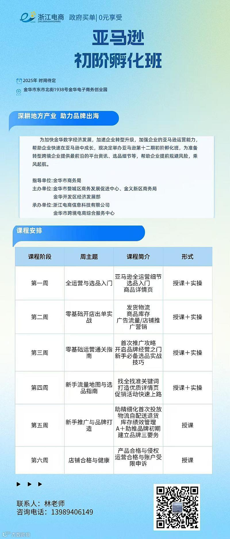 免费,免费!为期6周的亚马逊授课➕实操课程,五月底在金华正式开课