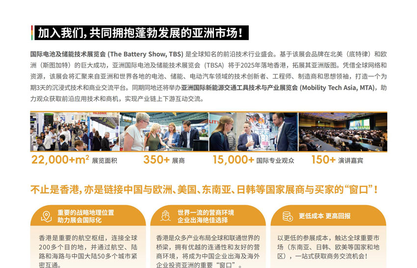 由Informa Markets主办的知名电池及储能展会品牌The Battery Show将落地亚洲——亚洲国际电池及储能技术展览会(The Battery Show Asia)将于2025年7月15-17日在香港亚洲国际博览馆举办。本届展会将助力中国企业出海,成为链接中国与欧洲、美国、东南亚、日韩、中东、澳洲等国家地区展商与买家的“窗口”!
