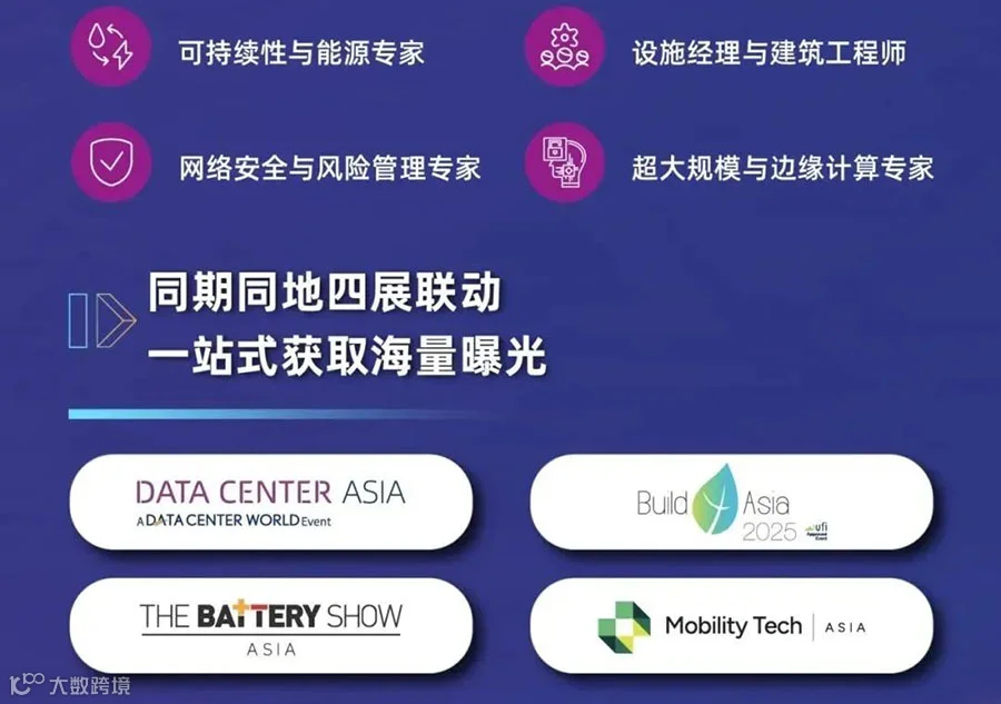 亚洲数据中心展2025与香港三大科技展览同期举办,为您提供了一个探索先进电池系统、能源存储解决方案、绿色设施技术、燃料电池和智能建筑系统协同效应的绝佳机会。