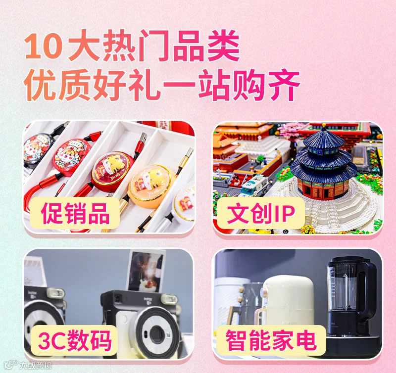 移动电子礼品及小家电系列:小家电、生活电器、智能产品,移动数码及周边,汽车电子,手机周边,可穿戴产品,户外电子,美容及医疗健康,AR/VR,厨房小家电系列、料理及烹饪电器
