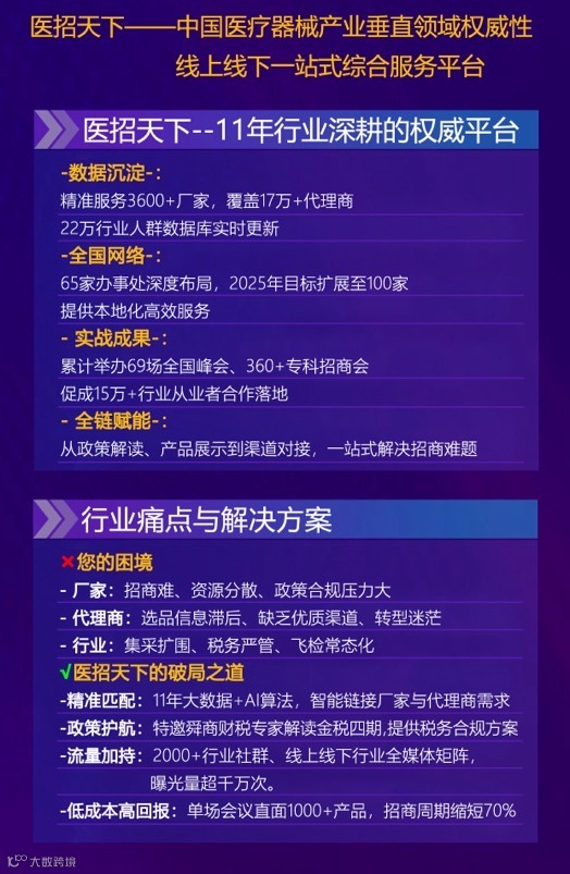 定位:中国医疗器械产业垂直领域权威性全国招商服务平台