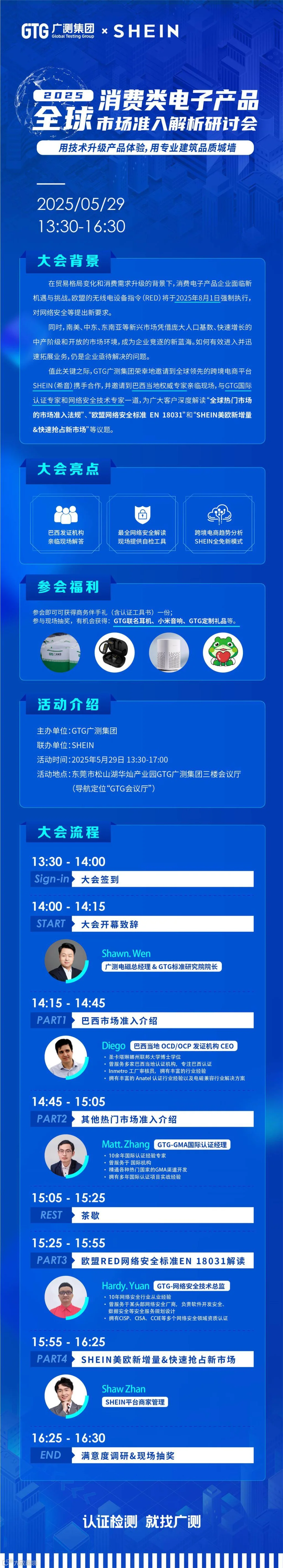 【GTG广测集团】2025消费类电子产品全球市场准入解析研讨会