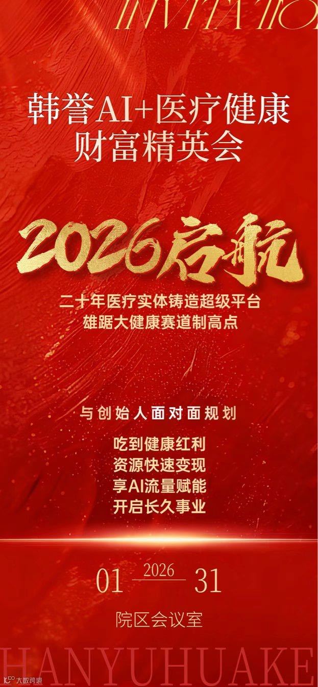 想改运,想创业,想转型,想逆袭,无论您是想跨入医疗级大健康赛道、或是老慢病防控关注者,还是AI转型探索者,这场「AI+医疗健康财富峰会」,都不容错过。