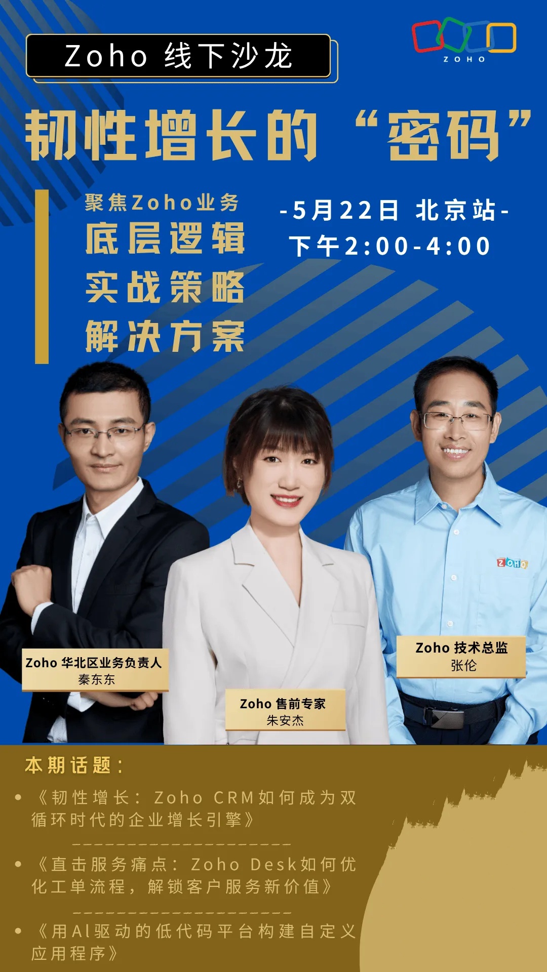 14:00 - 14:40 《韧性增长:Zoho CRM如何成为双循环时代的企业增长引擎》- 秦东东