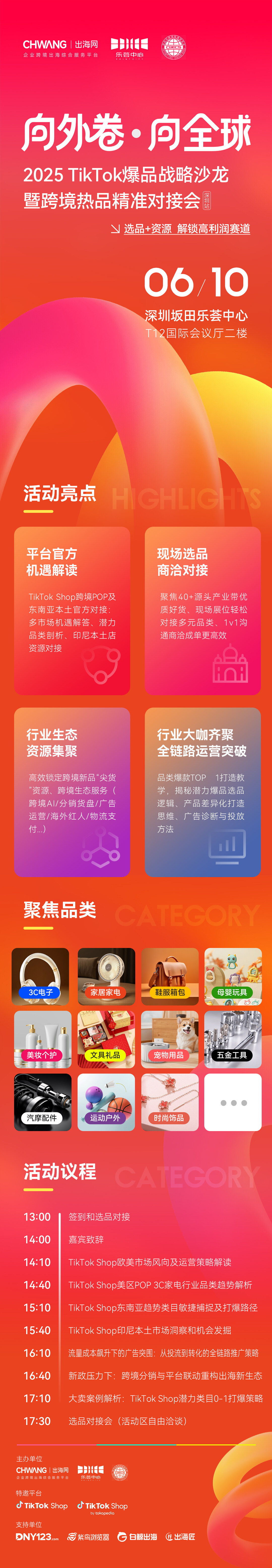 向外卷·向全球-2025TikTok爆品战略沙龙暨跨境热品精准对接会(深圳站)
