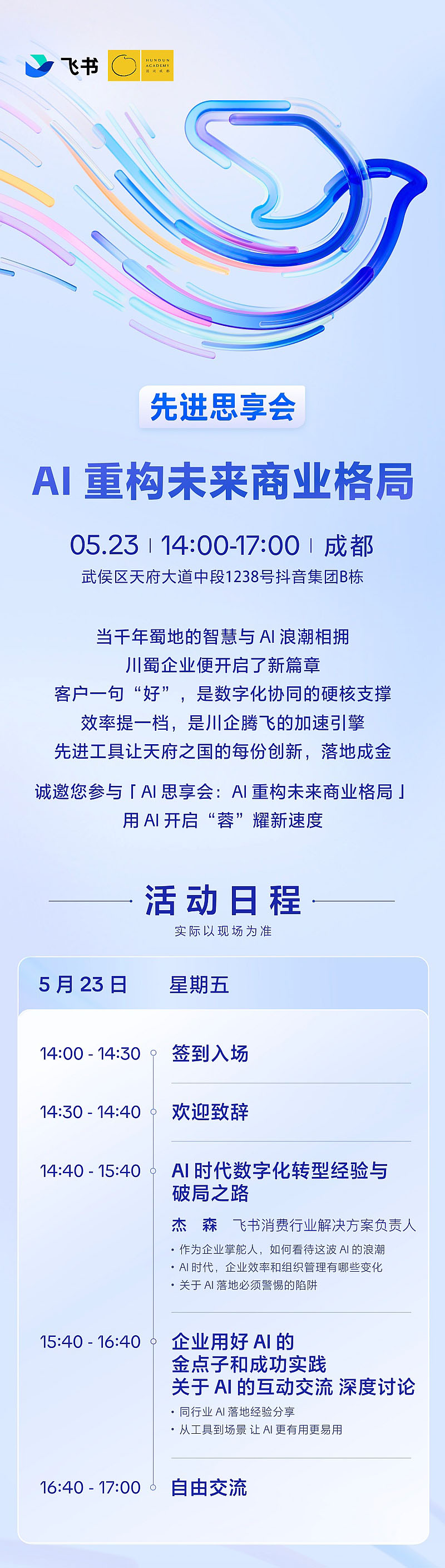 【混沌 Ai 创新院 】 5月加餐:飞书「AI 重构未来商业格局」工作坊在成都等您!