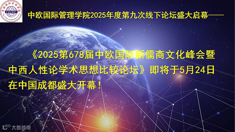 《2025第678届中欧国际新儒商文化峰会暨中西人性论学术思想比较论坛》即将于2025年5月24日(周六)在中国成都盛大开幕!