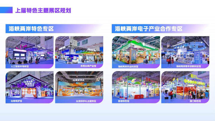 本届台博会计划设海峡两岸电子产业合作专区、海峡两岸特色专区、各省市形象馆专区和东莞特色展馆专区,具体包含东莞馆、人工智能与半导体馆、粤港澳大湾区青年创新创业馆、两岸农业科技馆、东莞各镇街形象馆等。