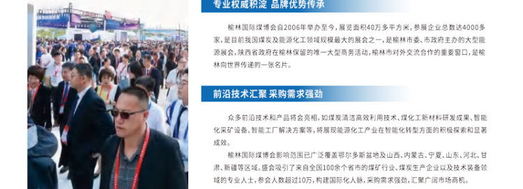 第十九届榆林国际煤博会深度聚焦煤炭及能源产业的各个领域,诚邀行业内权威专家学者、企业代表等嘉宾参与,旨在确保展会的专业性与权威性双重提升。展会内容全面覆盖煤炭开采、洗选、精细加工、高效转化、多元化利用等全产业链环节,精心呈现前沿技术成果、创新产品及一站式解决方案,精准对接参展商与观众的多样化需求。同时,展会将汇聚国内外众多知名企业,搭建国际交流平台,促进国际间的技术交流和贸易合作;展会期间将举办一系列高峰论坛、技术研讨会及产品发布会等活动,激发行业创新活力,共谋产业发展蓝图。