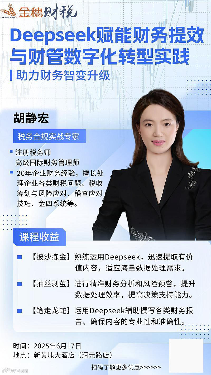 本课程旨在深入探讨Deepseek在财务领域的应用,揭示其如何成为提升效率的秘籍。我们将从Deepseek的基础知识入手,逐步深入到其在财务流程自动化、财务职场新角色塑造、全财务场景应用以及财务智能办公等方面的高级应用。通过丰富的案例研究和实战演练,参与者将学会如何将Deepseek融入日常财务工作,实现效率的飞跃和成本的有效控制,推动财务管理水平迈向新高度。