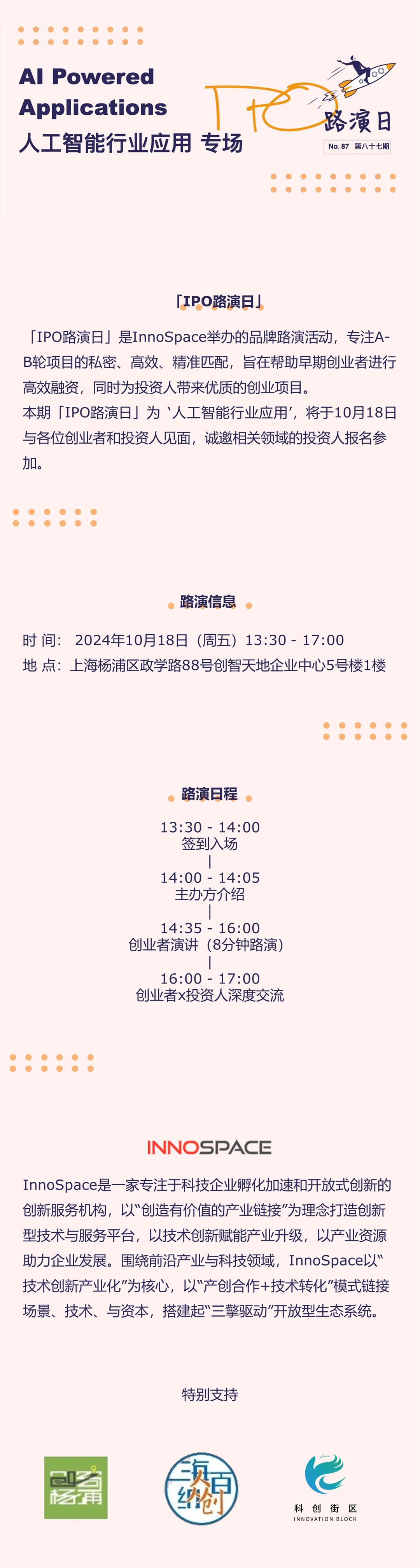 「IPO路演日」第八十七期 -人工智能行业应用专场