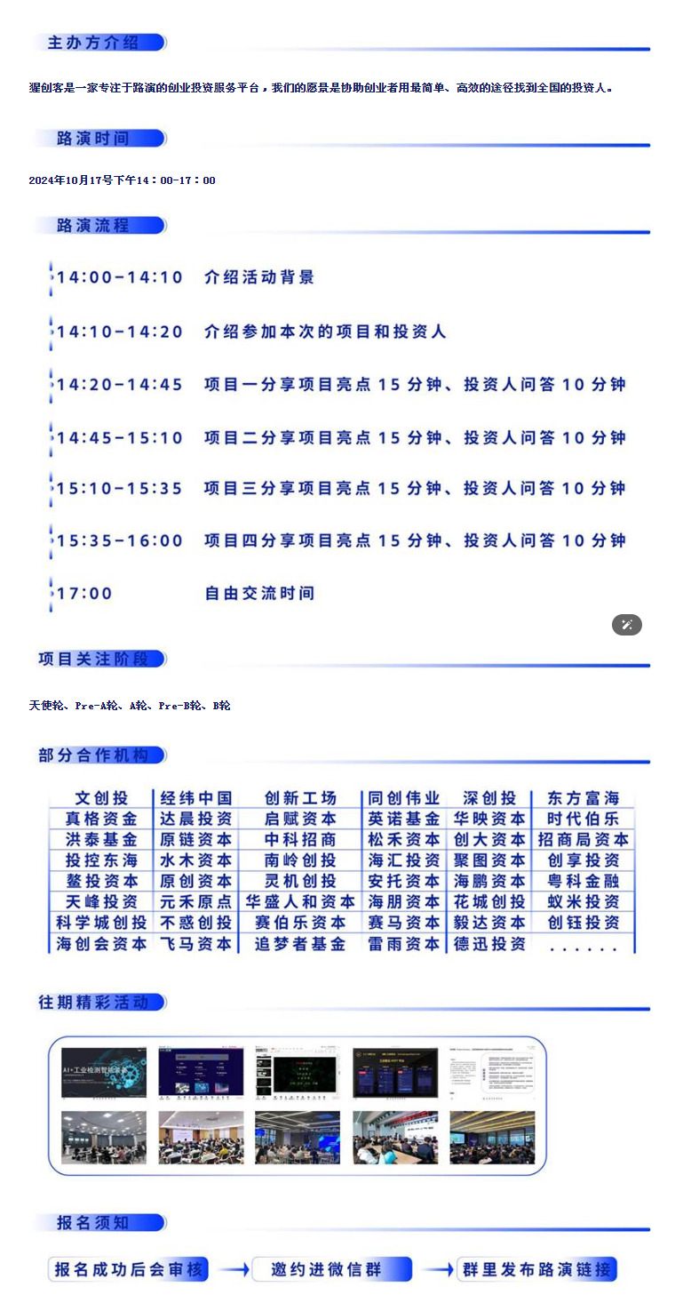 猩创客是一家专注于路演的创业投资服务平台,我们的愿景是协助创业者用最简单、高效的途径找到全国的投资人。