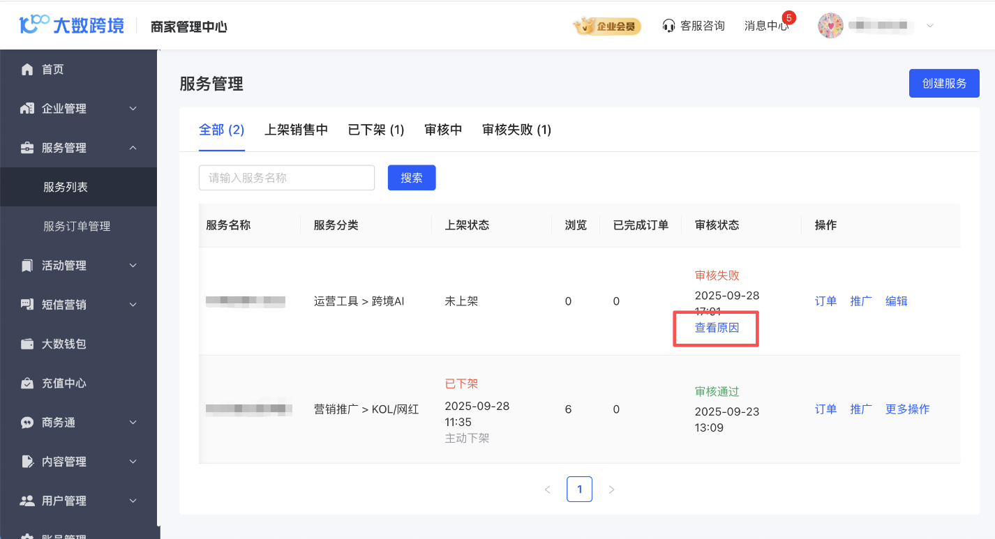 所有服务商创建的服务都需要经过平台审核,只有审核通过的服务才能上架到服务超市中,面向跨境卖家展示或售卖。