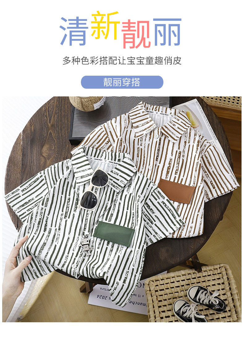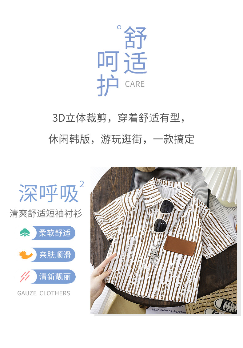 男童夏季短袖新款小童洋气时尚帅帅哒竖条字母标短袖三件套潮