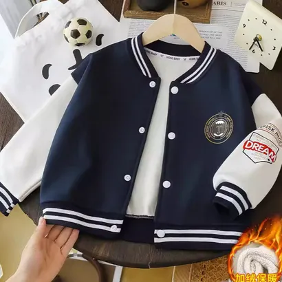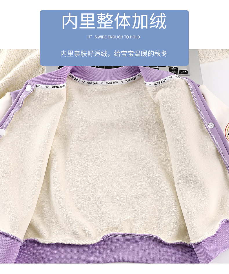 秋冬季男女童加绒外套新款韩版儿童保暖棒球服宽松百搭单上衣