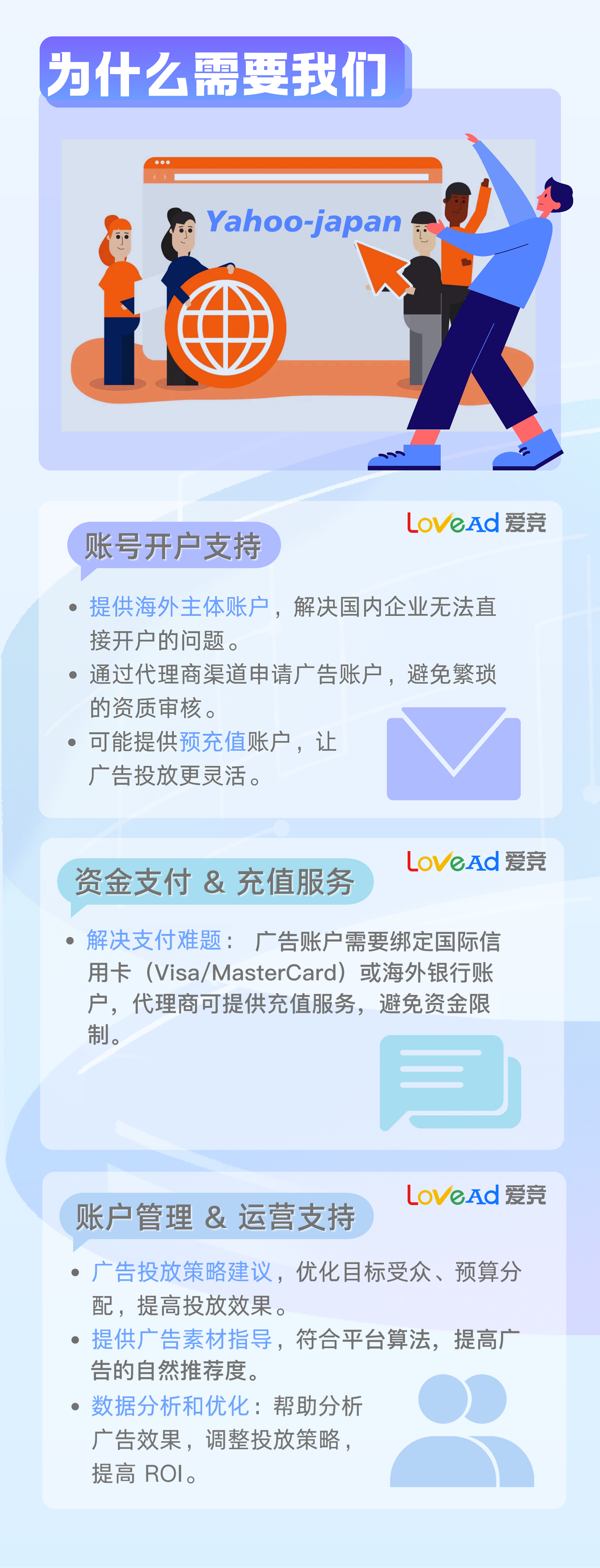 我们提供专业的Yahoo-Iapan广告代开户服务,快速开通高质量广告账户,稳定投放,助力企业高效营销。安全合规,资质齐全,满足各种投放需求,欢迎咨询!