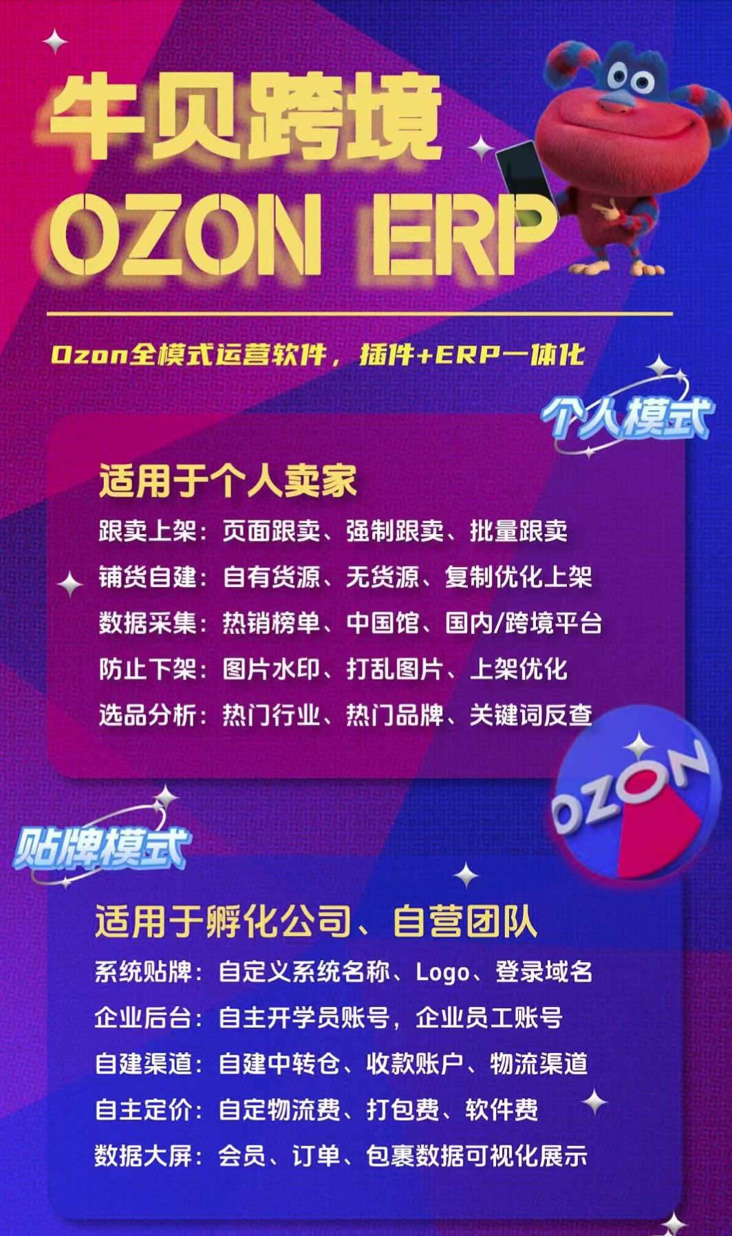 OZON平台的ERP涵盖产品管理、订单处理、财务管理、销售分析等,是一个综合性的管理系统。系统由公司自主研发,支持贴牌定制,贴牌后可更换logo域名,设置收款,开设系统后台,自主开账号,不限制数量。