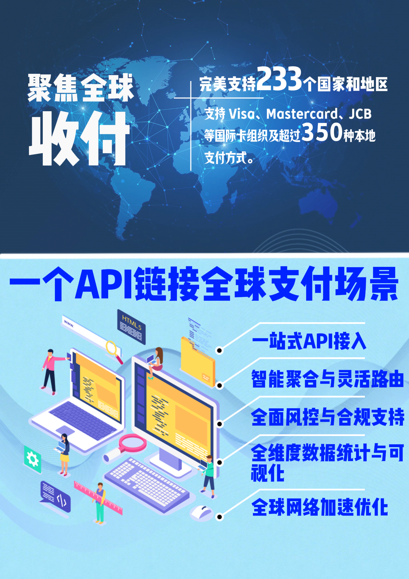 一站式API接入,集成全产品能力,支持收单、收款、发卡等业务模块,便于快速部署与维护