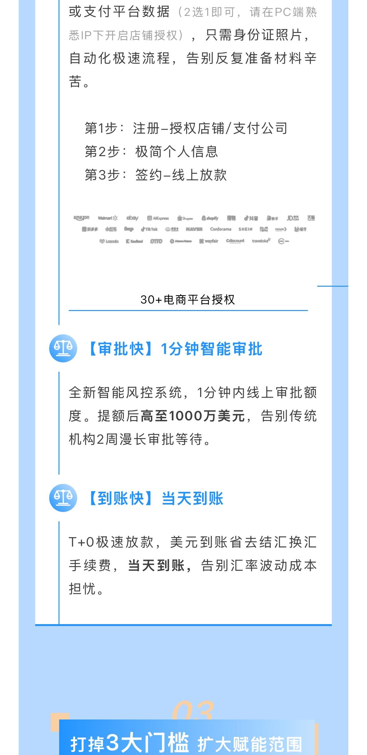 全场景覆盖:满足跨境电商卖家,从备货、营销、物流、仓储、关税等各场景的资金需求