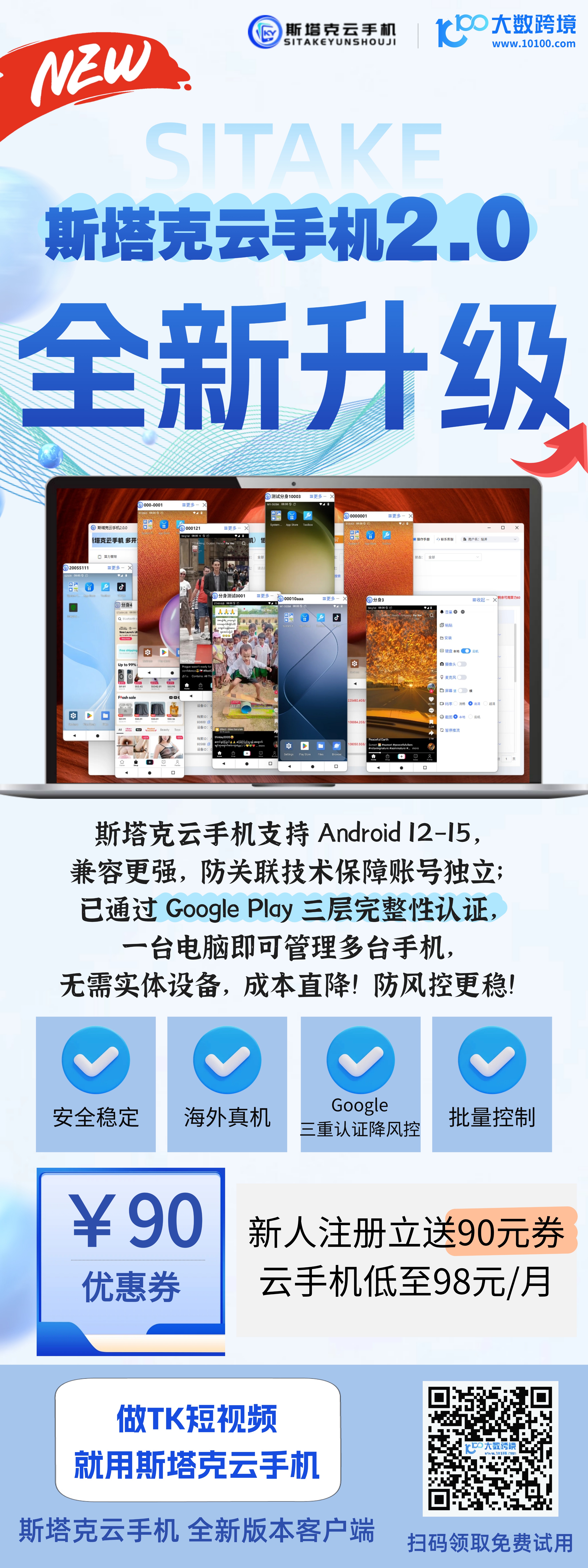 斯塔克云手机支持 Android 12-15,兼容更强,防关联技术保障账号独立;已通过 Google Play 三层完整性认证,一台电脑即可管理多台手机,无需实体设备,成本直降!防