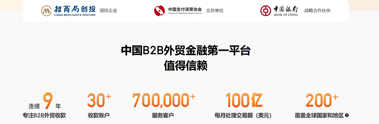 中国B2B外贸金融第一平台,坐拥70万+外贸企业用户