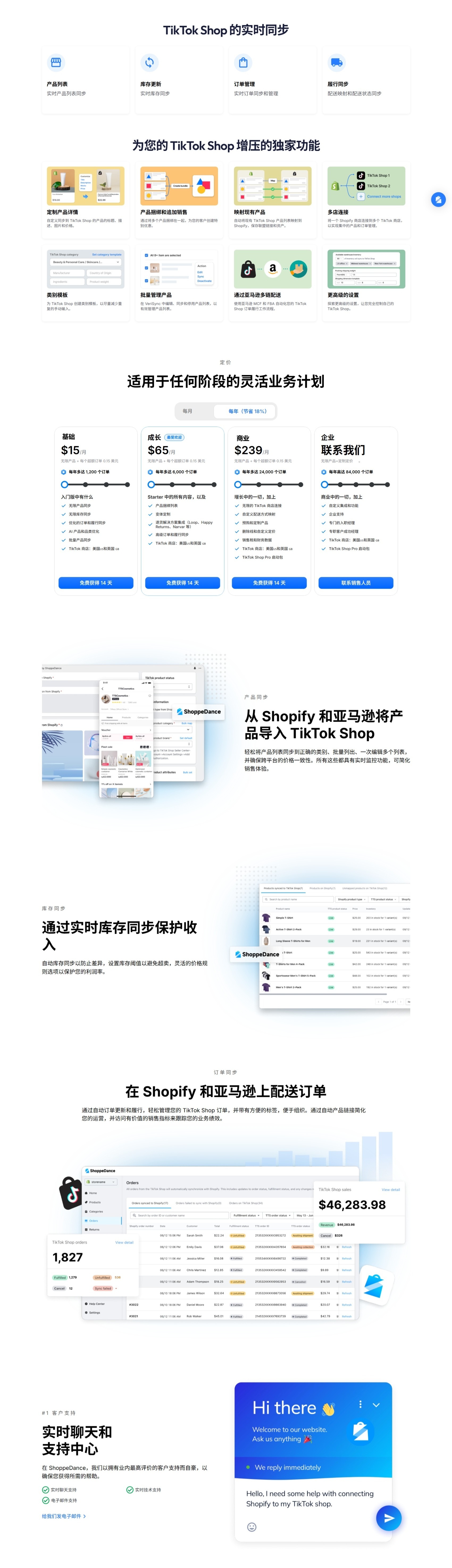 将产品从 Shopify 和亚马逊等各种平台无缝同步到 TikTok Shop;我们的团队来自 TikTok Shop,拥有美国顶级店铺运营经验;官方推荐伙伴,实时同步产品订单库存,成功率高