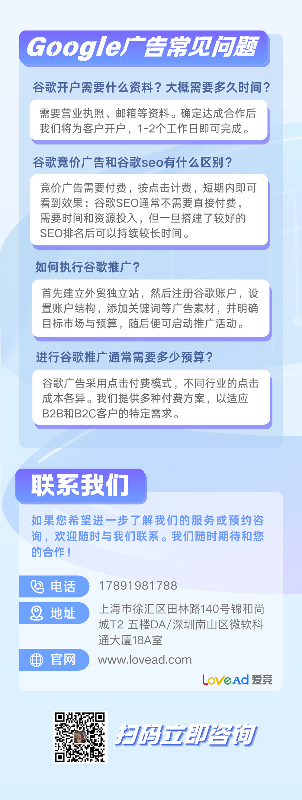 我们提供专业的Google广告代开户服务,支持全球投放,快速开通高质量账户,稳定运营,助力企业精准获客。安全合规,资质齐全,适用于各类推广需求,欢迎咨询!